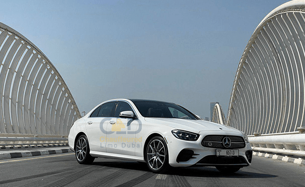 Mercedes Benz E200 can accommodate 4 persons. Enjoy unparalleled comfort and luxury. We offer several luxury cars for rent along with a chauffeur to drive you around Dubai in style. Book your luxury car with a driver now and enjoy cruising around Dubai in style. Book Mercedes Benz E200 with driver in Dubai at affordable rental prices. No one can beat us in prices and quality of service. Our chauffeurs are professionally-trained and RTA-approved. Always polite, courteous, uniformed and punctual. They are aware of all the major routes across the UAE besides every car is GPS-enabled. Our all-inclusive rates are the lowest in the market and transparent. Thanks to our prepayment option, you or your guests won’t be paying anything at all during their travel other than for any additional usage.