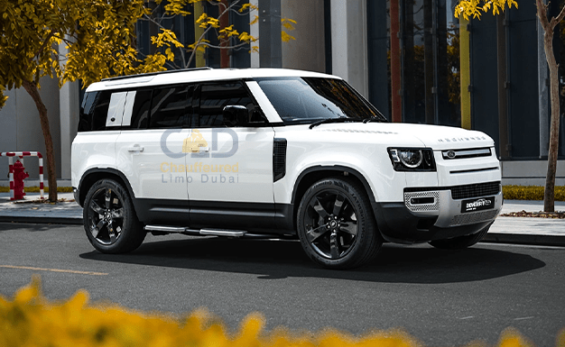 Booking a chauffeured limo car is the perfect way to sort your travel means in the UAE. For business meetings, day trips, wedding events and airport transfers in Dubai, and across the UAE. We offer several luxury cars for rent along with a chauffeur to drive you around Dubai in style. Book Land Rover Defender with driver at low rental rates. You can hire Land Rover Defender for Airport transfers, Dubai city tours, Dubai to Abu Dhabi transfers, corporate events and any other needs. Land Rover Defender is one of the most demanding cars in Dubai. At Chauffeured Limo Dubai we offer the most economical, luxurious and comfortable airport pickup and drop-off services from Dubai airport to any area of Dubai. Our chauffeurs are professionally trained and RTA-approved. Always polite, courteous, uniformed and punctual. They are aware of all the major routes across the UAE besides every car is GPS-enabled. Our all-inclusive rates are the lowest in the market and transparent. Thanks to our prepayment option, you or your guests won’t be paying anything at all during their travel other than for any additional usage.